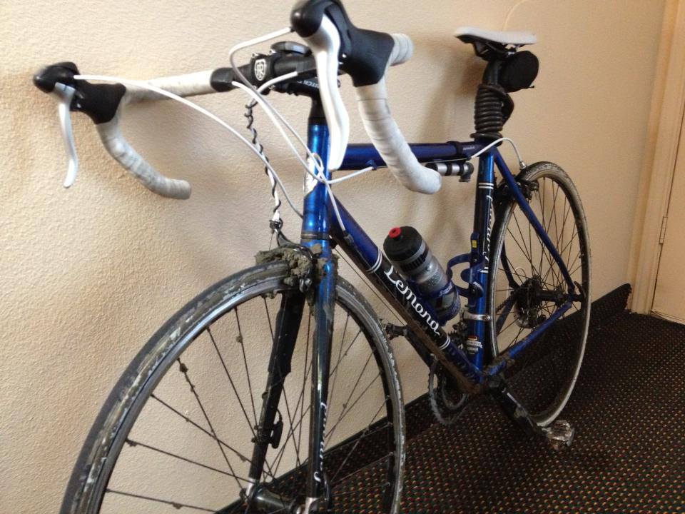 I had to make some tough decisions waking up Day 12. I could splurge and purchase a new smart phone or I could continue to rely on old fashioned planning and chicken scratch maps. Since I was already a little over budget on the trip, I decided to forego modern technology and trust my instincts. I knew navigating my way out of the giant Dallas/Fort Worth area wasn’t going to be easy, but I was up to the challenge. After plotting my route on a wrinkled piece of scratch paper, I set out. I can’t began to tell you how gratifying it was each time I encountered a new road that confirmed my map’s accuracy. Occasionally, roads weren’t labeled, and I’d have to use my best judgment, but it always worked out. I passed through some very nice areas, and I encountered my first actual cyclists of the entire trip, which shocked me considering I was already 1,500 miles in. I actually found myself racing some hardcore triathletes around a lake wondering what they would think if they knew I was in the middle of a cross country adventure. The ride was going absolutely awesome, and I was closing in on my destination when disaster struck. Suddenly the road ended in construction leaving me with nowhere to go. Without a smart phone, I had no way to navigate and I didn’t want to backtrack. I figured the road had to start up at some point so I decided to shoulder my bike and hike through the vast expanse of mud and water. As disgusting as it was, I managed to find pleasure in the experience knowing that it would make a good addition to my growing collection of crazy stories. Finally, after several minutes of hiking, I reached dry pavement and got back on my bike. At first, the heavy mud made it difficult to pedal, but after a few miles I managed to shed most of the mud, and I was back up to speed. I rolled into our motel that evening and had a long conversation with the receptionist regarding my muddy bike and the disappearance of our reservations. Finally, we figured it out, and I met up with Aaron who was just as curious about the mud. Fortunately, the night was young and I had plenty of time to tell him about the crazy adventure over a very gluttonous $5 CiCi’s Pizza Buffet. All in all, the day was a success. I made it to Terrell, and Aaron learned never to challenge me to a pizza eating competition !